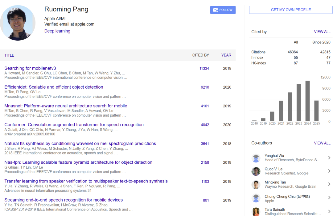 6月WWDC开发者大会上,他于1998年获得上海交通大学计算机科学学士学位,Ruoming Pang的副手Tom Gunter已于6月离职,